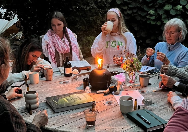 Kreativ, inspirierend und immer neu: In unseren Workshops tauchst du in wechselnde Themen wie Self-Care, Makramee oder Duftkreation ein. Auf den Bildern siehst du, wie wir unsere eigenen Parfüms aus reinen ätherischen Ölen herstellen, dabei entdecken wir Freude, Kreativität und persönliche Ausdruckskraft.